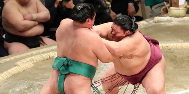 Le yokozuna Kakuryu et le sekiwake Mitakeumi sont restés invaincus et conservent la tête du tournoi ce samedi.