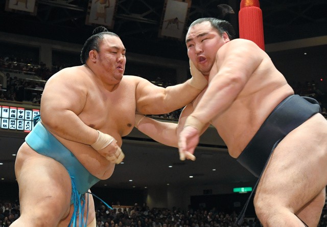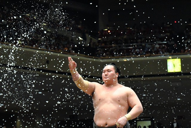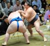 Kakuryu, however, succumbed to his second defeat. New sekiwake Kotoyuki (3-4) pushed the yokozuna’s chest and throat with both arms to put him off balance and then chased the desperate Mongolian around the ring before finally shoving him out.