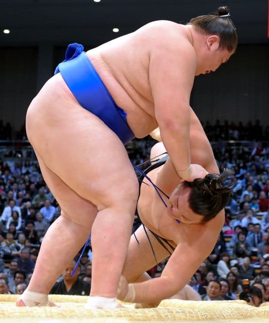 Tochinowaka qui n’avait pour le moment qu’une seule victoire obtenue lors de la première journée contre Kyokushuho renoue avec le succès en sortant Takanoiwa.