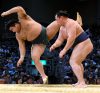 Kyokutenhô reste dans la course en obtenant sa 901ème victoire et c’était au tour d’Endô d’en faire les frais. Le jeune homme en difficulté depuis quelques mois montre des signes de faiblesse qui semble le rapprocher de plus en plus vers un nouveau make koshi.