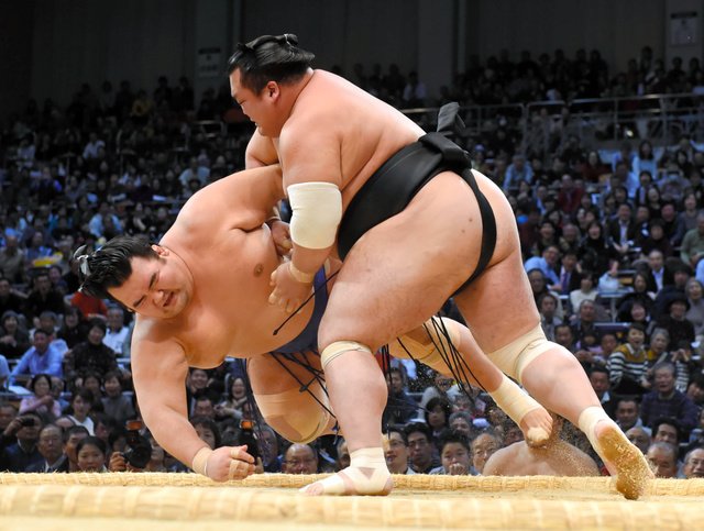 Okinoumi a bien failli perdre en exécutant un tour complet sur lui même alors qu’il faisait face à Tamawashi mais grâce à sa rapidité il est parvenu à le pousser hors du cercle par kotenage.
