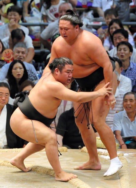 As sumo’s newest star stumbled, yokozuna Hakuho and Kakuryu remained unbeaten, oozing class in their victories over a pair of No. 3 maegashira in Ikioi (1-6) and Kaisei (5-2), respectively.