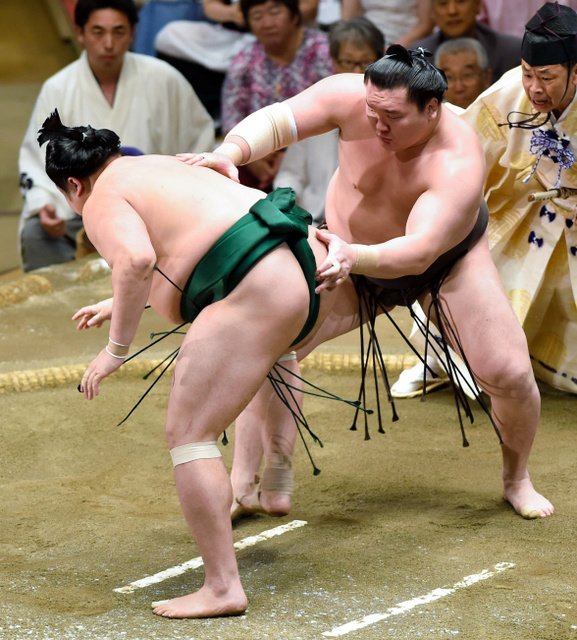 Elsewhere, sekiwake Myogiryu was upset by No. 1 maegashira Takarafuji (4-3) and dropped to 3-4, while Mongolian komusubi Ichinojo was saddled with his fifth defeat after getting bumped out by top-ranked maegashira Tochinoshin (2-5).