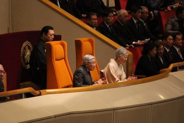 L’Empereur Akihito avec l’impératrice et Kitanoumi