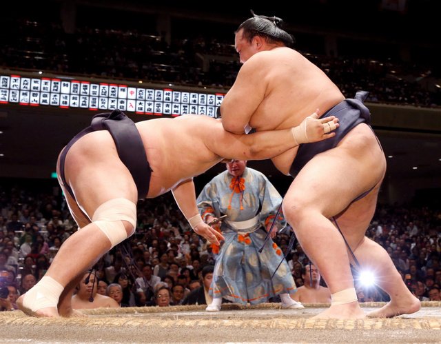 Kakuryu, l’autre yokozuna en compétition après le retrait sur blessure de Hakuho, a obtenu sa cinquième victoire en poussant vers le sol son compatriote mongol Takanoiwa dans le dernier combat de la journée.