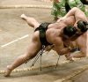 Harumafuji remained firmly in the hunt for back-to-back championships, locking on to fourth-ranked maegashira Chiyootori’s (1-7) belt and sending him down with an overarm throw.