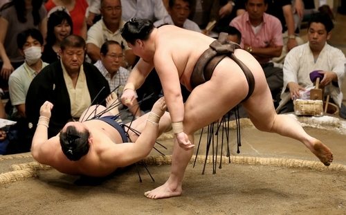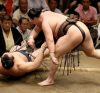 Endô qui avait fait un Nagoya basho remarquable manifeste davantage de difficultés en division makuuchi. Sa défaite aujourd’hui contre Gagamaru serait-il un signe montrant les limites du jeune homme? Il vaut mieux espérer que non et que tout ça est dû à un petit coup de mou passager. En tout cas le public est avec lui!