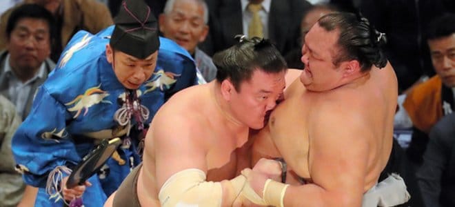Pendant ce temps, le yokozuna Kisenosato (4-4) continue de souffrir. Il a subi aujourd’hui sa deuxième défaite consécutive en étant expulsé de l’anneau par le maegashira 4 Ichinojo (7-1).