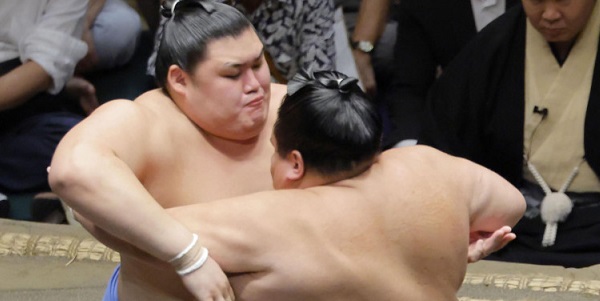 L’ôzeki Kotozakura a déséquilibré le maegashira 4 Shodai avant de surmonter la résistance tardive de l’ancien ôzeki pour sceller une victoire par oshidashi.