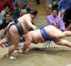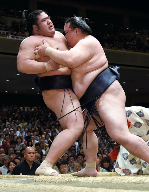 In other bouts, surly ozeki Kisenosato stayed one win off the pace at 6-2, rallying to smother Tochiozan (3-5) and bump the komusubi over the straw ridge.