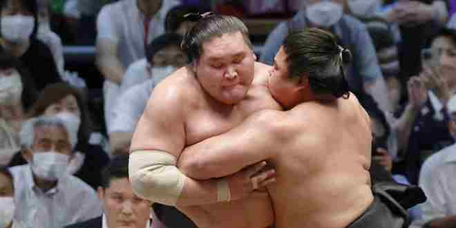 Terunofuji a battu en retraite sous la pression de la charge d’ouverture de Wakamotoharu, mais a saisi une prise de ceinture gauche et a presque jeté son adversaire hors du cercle dans les premières secondes. Mais le maegashira a riposté et une impasse de deux minutes s’est ensuivie.