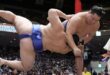 Terunofuji, revenu de blessure, a mis son dos et ses genoux réparés chirurgicalement à l’épreuve lors d’une longue bataille contre l’ancien komusubi Ryuden. Le yokozuna a finalement forcé le maegashira par-dessus les bottes de paille après avoir habilement manœuvré pour sortir d’une dangereuse prise de ceinture.