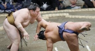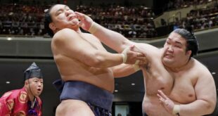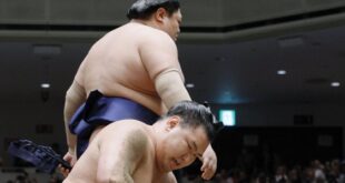 Ayant besoin de huit victoires pour rester ôzeki, Takakeisho (6-2) s’est rapproché du précieux nombre en battant rapidement le komusubi Shodai (3-5).
