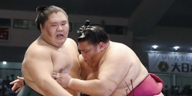 In the day’s first makuuchi-division bout, the 165-kilogram Asanoyama improved to 4-0 in his career against 116-kg dynamo Ishiura, who was pushed out to his fifth defeat.