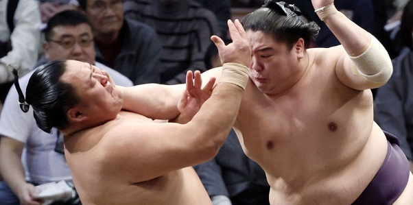 Hoshoryu attaque fort du bout de ses bras, mais Kotonowaka parvient à attraper le mawashi. À partir de là, l’ôzeki ne propose plus rien et c’est avec autorité que le sekiwake l’amène au bord du dohyô, et met fin au combat par un yoritaoshi. Sans nouvelle défaite, il pourrait rejoindre le rang d’ôzeki !