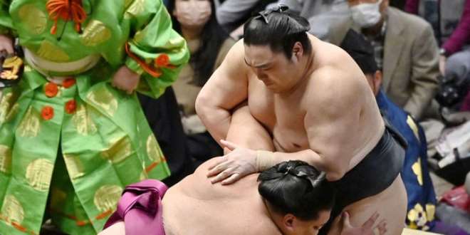 Il était capital pour le yokozuna Terunofuji (8-1) de vaincre Hokutofuji afin de rester juste derrière Mitakeumi au classement du présent tournoi. Et c’est ce qu’il fit, même avec son gabarit puissant et une belle volonté, Hokutofuji (M4, 3-6) n’a pas pu prendre le pas sur son adversaire.