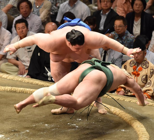 qui avait débuté le tournoi avec une surprenante victoire sur Hakuho a connu un passage à vide en subissant cinq défaites consécutives. Aujourd’hui le komusubi a enfin renoué avec les victoires en remportant son match face à Toyonoshima.