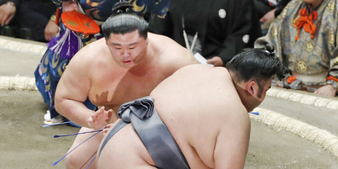 In addition to Takakeisho, two other wrestlers trail the leaders at 7-2 in the absence of grand champions Hakuho and Kakuryu, who pulled out of the meet earlier with injuries.