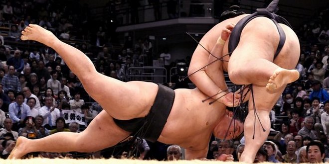 Harumafuji sent Okinoumi (2-7) packing in a flash after quickly getting a right overarm belt hold before sweeping the sekiwake off the ring.