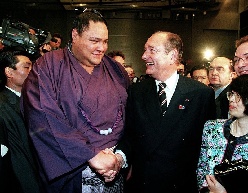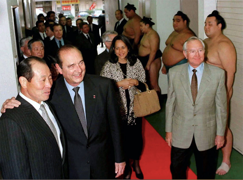 Véritable passionné, Jacques Chirac s’est imposé comme un ambassadeur de ce sport en France. À tel point que, dans l’imaginaire collectif, l’image du chef d’État et celle du sumo sont devenues indissociables. Pendant ses années à l’Élysée, il prenait systématiquement le temps de regarder, durant des heures, les combats de sumo, qu’il faisait venir en avance, avant même leur diffusion à la télévision.