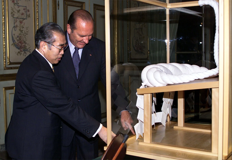 Les fonctions présidentielles conduisaient régulièrement Jacques Chirac au Japon, et à chaque occasion, il n’hésitait pas à mêler l’utile à l’agréable en honorant de sa présence le Kokugikan, toujours avec une grande attention. Il se dit même qu’il choisissait ses déplacements en fonction des dates des basho ! Et lorsqu’il ne pouvait pas être sur place, il trouvait toujours un moyen de ramener le sumo à lui.