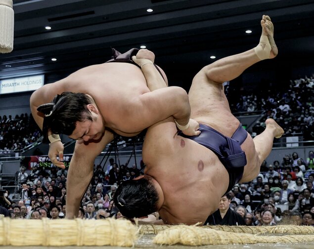 Le sekiwake Takayasu a subi sa cinquième défaite consécutive après avoir été mis hors de combat par le maegashira 3 Hiradoumi, tandis que le nouveau komusubi Atamifuji a dû patienter avant de renouer avec la victoire, victime d’une projection sous l’épaule du maegashira 3 Oho.