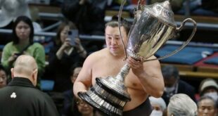 Face au yokozuna, Kirishima a immédiatement imposé une prise de mawashi par le bras gauche à son compatriote mongol Hoshoryu, qui s’est battu avec acharnement pour reprendre l’avantage, en vain. Kirishima cherchait sans cesse une ouverture pour porter un coup, et la persévérance de l’ancien ôzeki a fini par payer. Hoshoryu, qui vise toujours un premier titre depuis sa promotion au rang de yokozuna l’an dernier, a été projeté au sol sur le bord du dohyô.