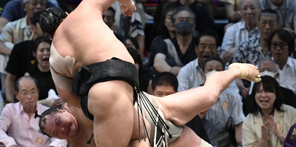 Dans l’un des combats les plus marquants de la journée, Hoshoryu a éliminé le sekiwake Wakamotoharu de la course au titre avec une clé de bras. Le neveu de l’ancien grand yokozuna Asashoryû a puni la tentative mal exécutée de son adversaire d’esquiver le tachi-ai, l’attrapant en l’air et le jetant sur la terre battue. Hoshoryu, toujours en course pour sa promotion en ôzeki, s’est en même temps hissé dans le groupe de tête du classement.