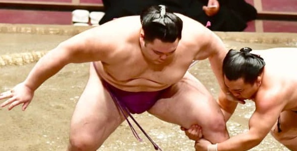 Fighting in the elite makuuchi division for the first time since January 2018, Terunofuji was still able to hang on to his one-win tournament lead. That came thanks to a shocking victory by No. 7 Terutsuyoshi, his Isegahama stablemate, over ozeki Asanoyama, who ended the day tied with Shodai and fellow sekiwake Mitakeumi at 11-3.
