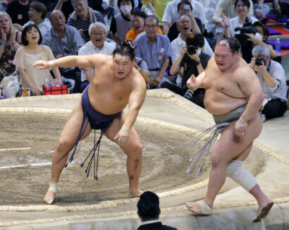 L’ancien komusubi Hokutofuji est resté dans la course en battant le maegashira 1 Nishikigi avant que Hoshoryu ne s’occupe de Hakuoho dans leur combat en tête-à-tête.