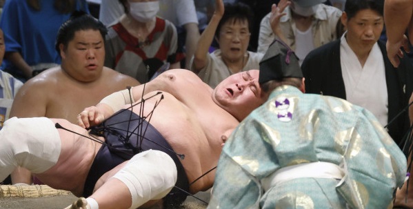 Le maegashira 1 Nishikigi a remporté une victoire surprise contre le yokozuna Terunofuji ce lundi, infligeant au grand champion une défaite au deuxième jour de combat du Nagoya Bashô.