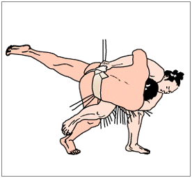 L’attaquant place une jambe devant la jambe de son adversaire, se retourne dans la même direction que lui et tire en avant, le projetant par dessus sa jambe.