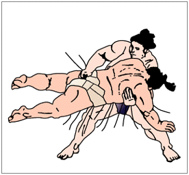L’attaquant, depuis une prise intérieure, tire son opposant vers l’arrière et vers le haut pour le déstabiliser et l’allonger sur le ventre