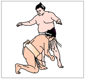 Le rikishi tombe à genoux sans que son opposant n’aie tenté aucune technique. Tsukihiza donne la victoire sans combattre. Introduit en 2001