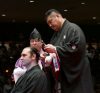 Comme à l’accoutumé, c’est à son oyakata (ex Kotonowaka) qu’est revenu le privilège de donner le dernier coup de ciseaux.
