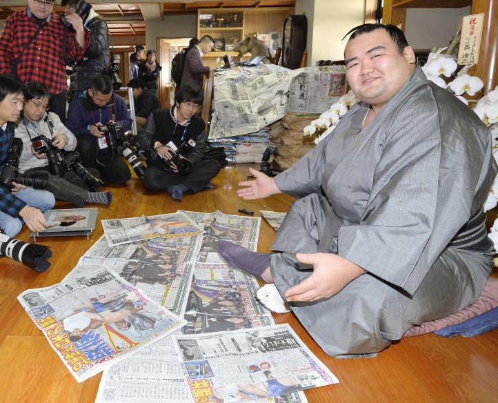 A 31 ans et 11 mois, Kotoshogiku est devenu le premier grand champion d’origine japonaise à remporter un tournoi en 10 ans en battant l’ôzeki Goeido en dernière journée du hatsu basho 2016 dimanche au Ryogoku Kokugikan. À la suite de sa victoire, Kotoshogiku sera admissible à une promotion au rang de yokozuna s’il parvient à s’emparer du titre en mars prochain.