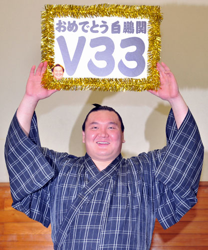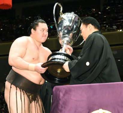 Le yokozuna Hakuhô en rempotant son 33ème titre lors de l’Hatsu basho 2015 après sa victoire sur Kisenosato le treizième jour s’est emparé de la coupe de l’Empereur. Suite à cet exploit, le mongol a été présenté dans les médias du monde entier.