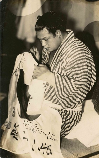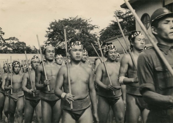 Pour supporter les troupes japonaises en Chine, des tournois de démonstration étaient organisés comme celui de 1940 à Nanjing. Akinoumi et Minanogawa, les yokozuna de l’époque, se rendaient dans des écoles d’aviation à Tokyo pour soutenir moralement les recrues et leur porter chance.
