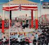 Le Kokugikan apportait également sont soutient en suspendant de grandes banderoles portant les inscriptions : » Mobilisation générale de l’Esprit National« , « Protégez les soldats blessés » ou « Ne baissez pas votre garde après avoir gagné« . La propagande incitait à l’obéissance totale avec des phrases telles que « Recherche des morts fidèles » et « consacré à la loyauté« . Les programmes des combats du jour étaient sans équivoque avec des phrases comme : « Atteindre la victoire totale l’année prochaine » ou « les gens (du peuple) sont des boules de feu !«