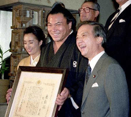 Chiyonofuji, whose real name was Mitsugu Akimoto, was the first sumo wrestler to receive the People’s Honor Award in 1989 and ranks third in championships won behind Hakuho (37) and Taiho (32).