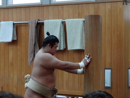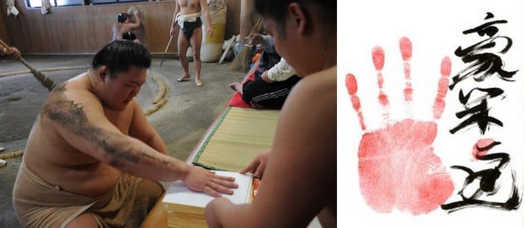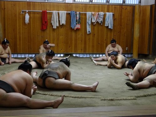 banzuke (番付) : Liste des lutteurs apprentis et titulaires classés par rang. Elle est calligraphiée 13 jours avant chaque tournoi (en savoir plus) banzuke-gai (番付外) : Les lutteurs qui ne sont pas encore classés dans le banzuke ou qui en sont sortis à cause d’une blessure ou autre raison de non-participation. basho (場所) : Tournoi de sumo. Il y a 6 basho officiels par an, trois à Tokyo (janvier, mai et septembre) et trois autres en provinces (Osaka en mars, Nagoya en juillet et Fukuoka en novembre) Dans une compétition officielle, il a sept ou quinze combats par lutteur en fonction de leur rang organisés sur une période de quinze jours. bintsuke (鬢付け油) : Huile de camomille utilisée pour lisser la chevelure en chignon des lutteurs. butsukari-keiko (ぶつかり稽古) Exercice qui consiste, pour un rikishi, à pousser son partenaire, d’une limite à l’autre du dohyô, avec sa tête et ses mains (le partenaire est en position de résistance, et se contente de présenter son torse) ; cet exercice est poussé jusqu’à l’épuisement des lutteurs. |
