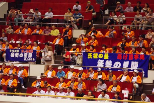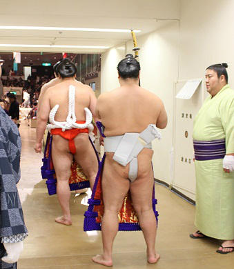 ichimon (一門) : Groupement des heya sous forme de clan issue généralement d’une même confrérie mère. En 2014 on comptait 6 ichimon : Dewanoumi, Nishonoseki, Tokitsukaze, Takasago, Isegahama et Takanohana. Jusqu’en 1965, les lutteurs de la même ichimon ne pouvaient pas se rencontrer lors d’un tournoi. intai (引退) / intai-zumô (引退相撲) : Retraite du monde du sumô. isegahama ichimon (伊勢ヶ濱一門) : Le clan isegahama regroupe les heya : Isegahama, Kasugayama, Oitekaze, Miyagino, Tomozuna, Asakayama et Asahiyama. |