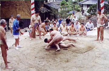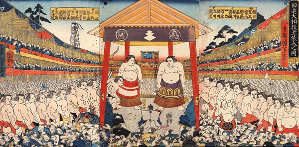 aki basho (秋場所) : Tournoi d’automne, cinquième de la saison qui se tient en septembre au Kokugikan à Tokyo. atari (当たり) : Choc frontal des deux adversaires lors du tachi-ai. azukari (預り) : Une sorte de tirage au sort pour désigner le vainqueur d’un combat qui s’est soldé par un ex-aequo. Système abandonné en 1927 au profit du torinaoshi qui permet de refaire le match. |
