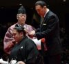 Miyabiyama : danpatsu shiki au KokugikanMiyabiyama lors du danpatsu shiki