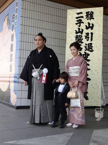 En juin dernier une tragédie est arrivés quand son second fils Masataka est mort. Le samedi, Futagoyama a simulé son dernier combat de sumo avec son fils de 4 ans Masatoshi.