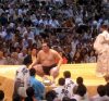Et que le spectacle commence, sur et en dehors du dohyo….