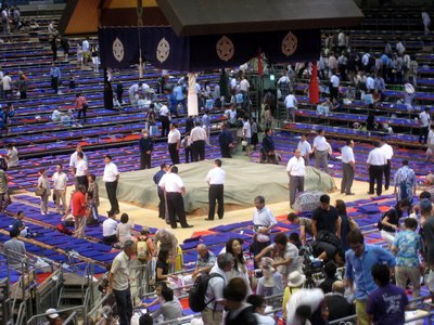À partir du milieu de l’après-midi, l’ambiance gagne progressivement en ferveur et en tension jusqu’au makuuchi. La salle est alors pleine à craquer, vibre comme un seul homme, et plus on grimpe dans la hiérarchie, plus les spectateurs s’expriment : les cris d’encouragements pour les rikishi fusent de toute part, les applaudissements se déchaînent après chaque combat… mais le plus impressionnant reste le silence : juste avant que les lutteurs ne s’élancent l’un contre l’autre, dans les secondes précédant l’impact, le silence est total, plus un son en provenance des milliers de spectateurs, plus un souffle, pas même un raclement de gorge. Jamais on n’entendrait mieux la proverbiale mouche voler….