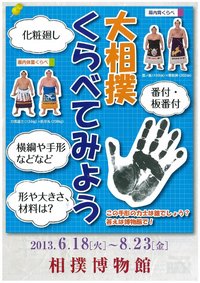 Affiche exposition sur les comparaisons dans le sumoLa semaine dernière, je me suis rendu au musée du sumo pour y découvrir la nouvelle exposition. Pour ceux qui ne connaissent toujours pas ce musée, il est dans l’enceinte même du Kokugikan et son entrée est gratuite. Il y a 6 nouvelles expositions par an et celle du moment a pour thème les comparaisons dans le sumo.