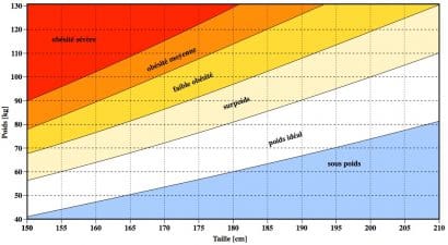 Le graphique suivant montre la détermination classique du surpoids ou pas :
