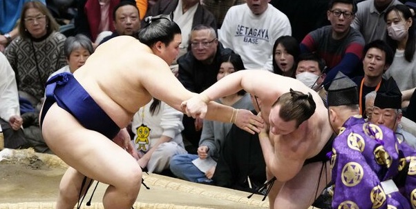 J13 – Aonishiki conserve la tête du classement et poursuit sa série de victoires face à un Hoshoryu diminué